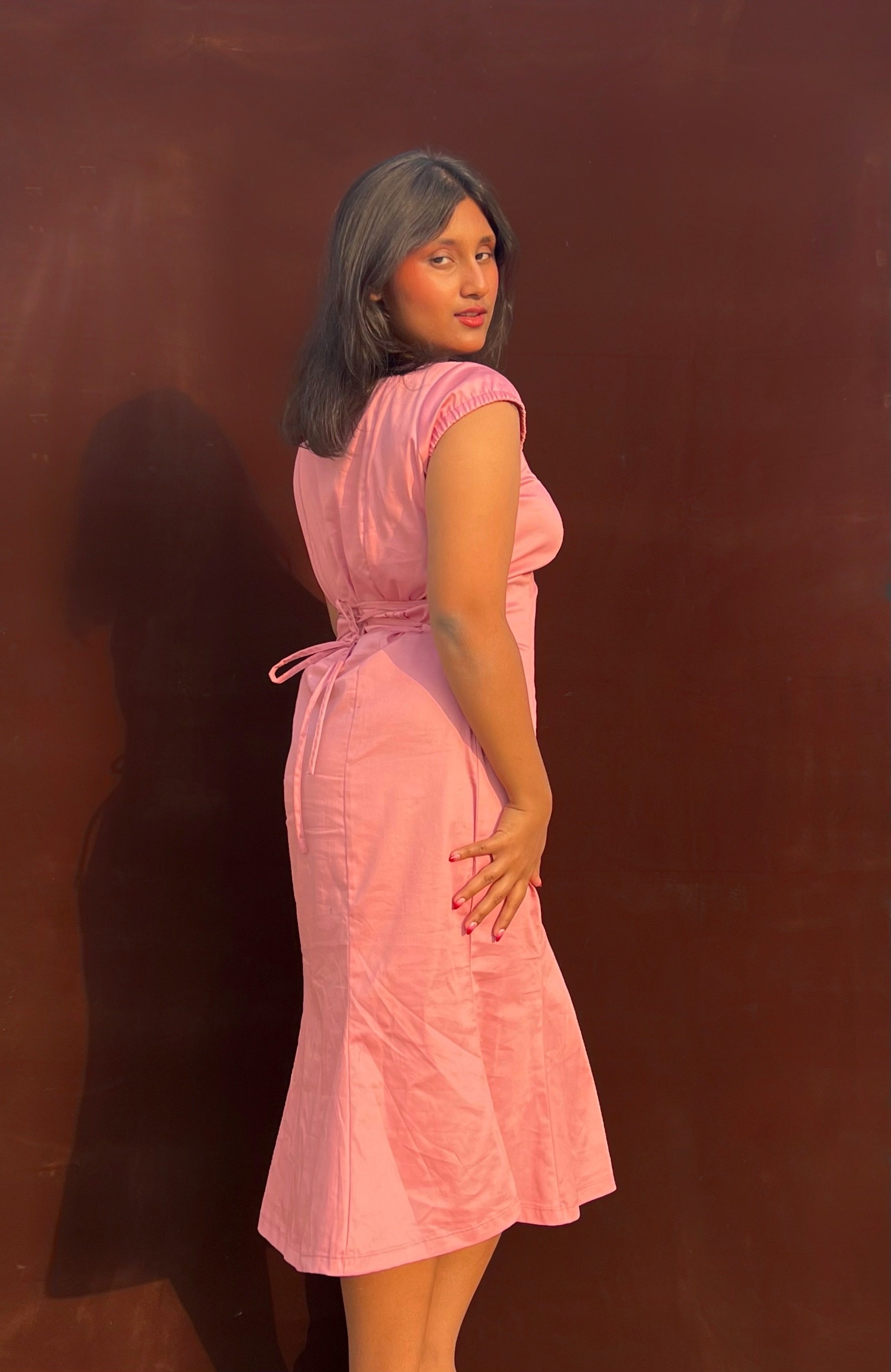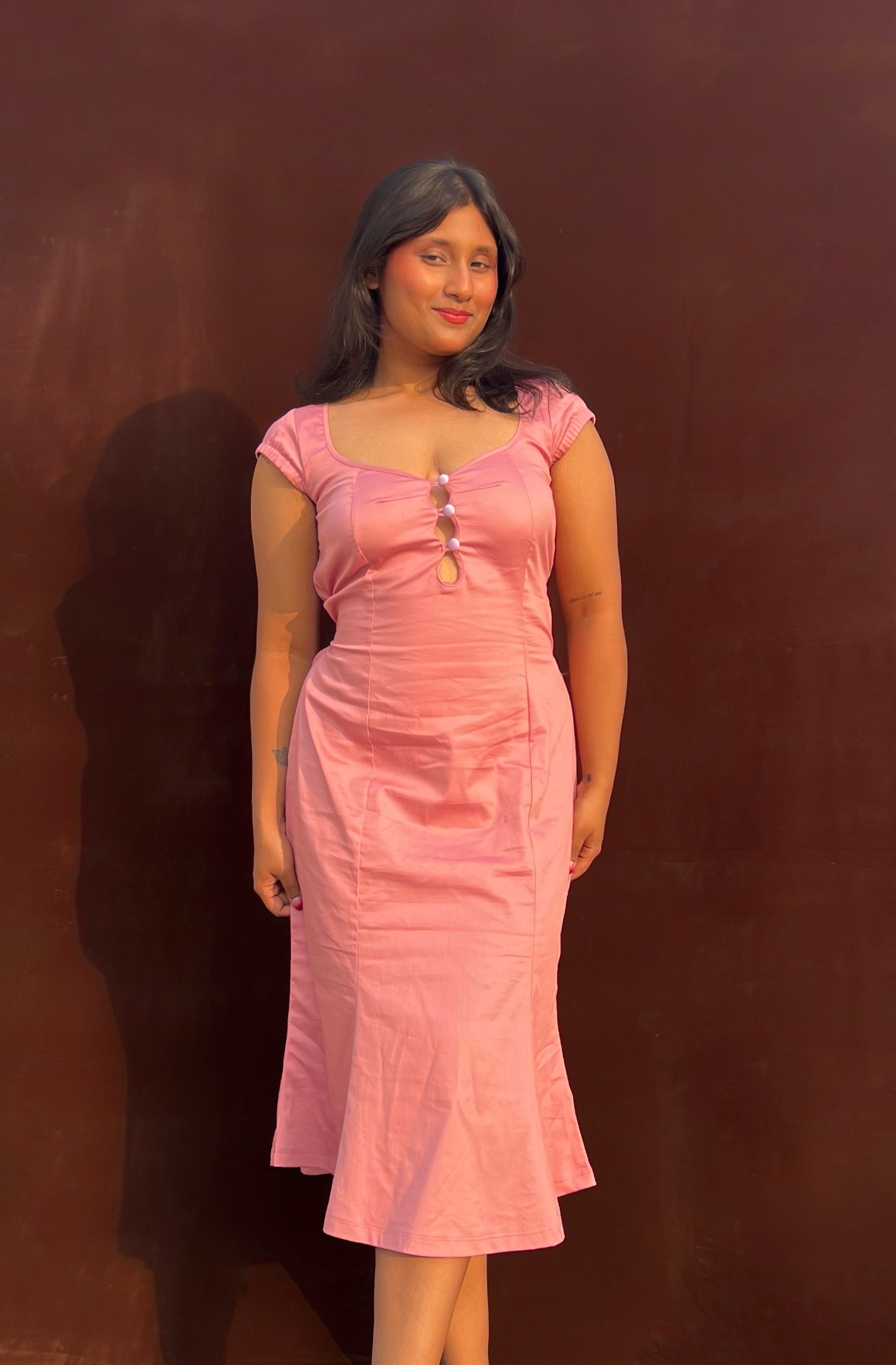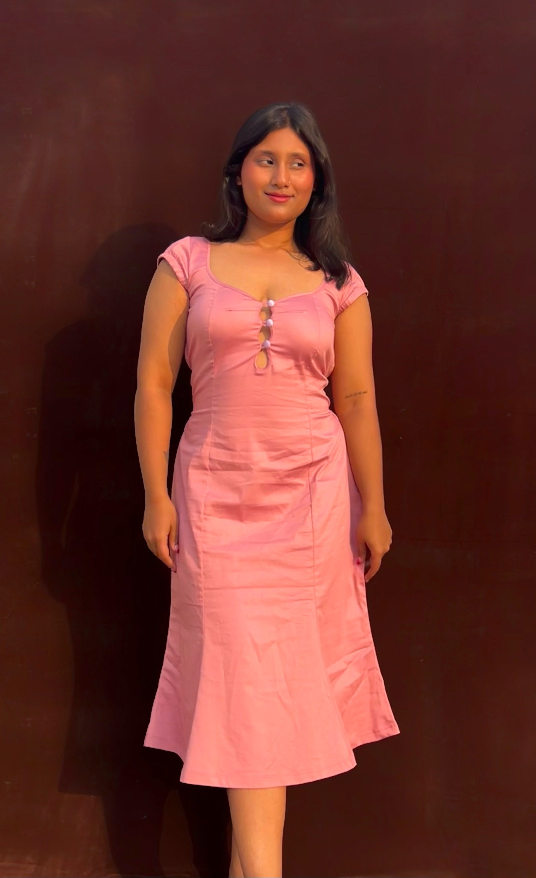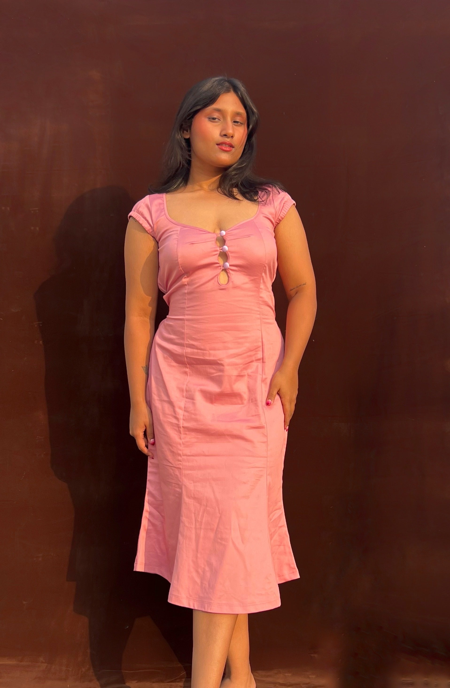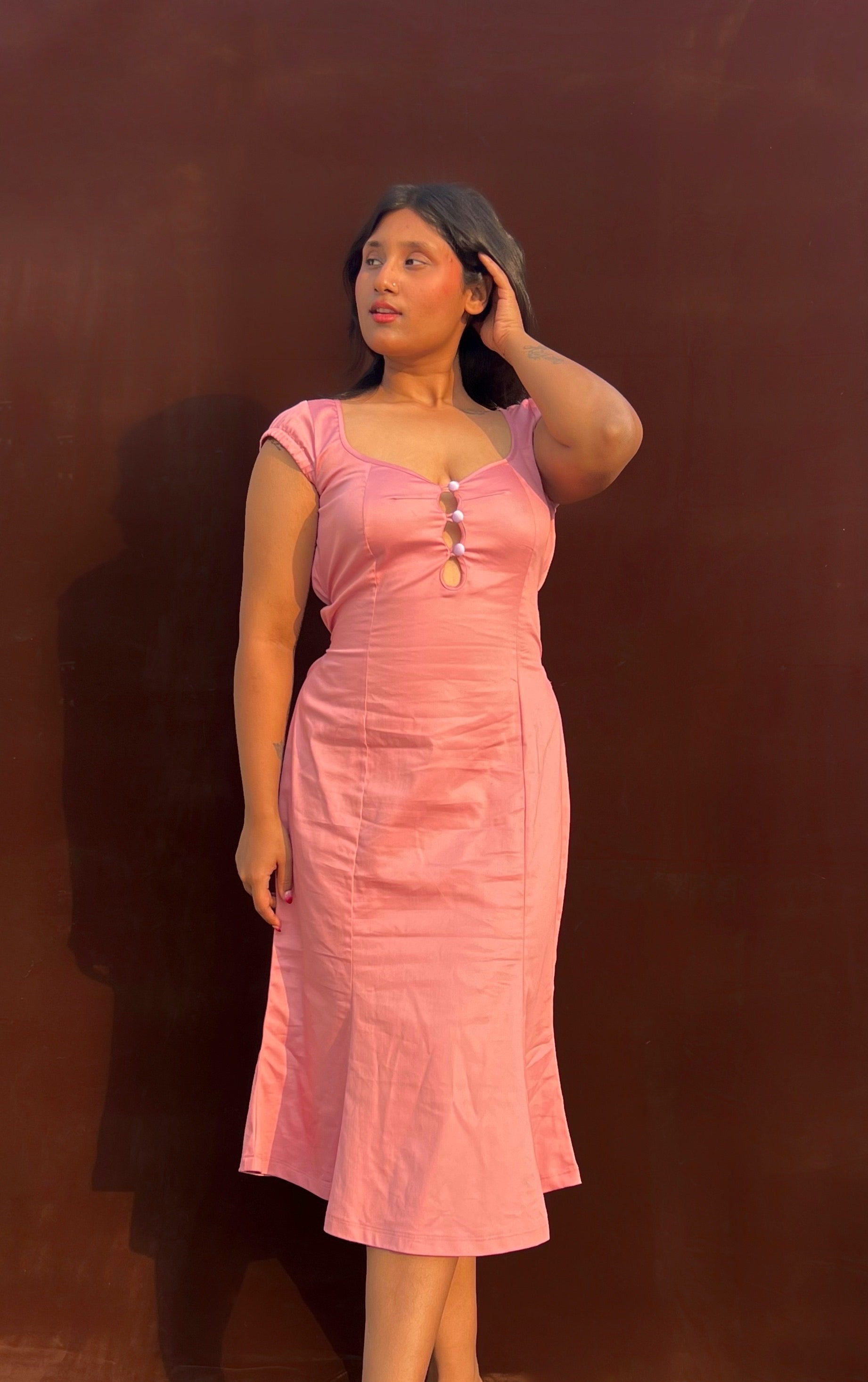 • Length: Midi length, designed to flatter the body with a soft bell-structured fall (model 5‘3 wearing M size)