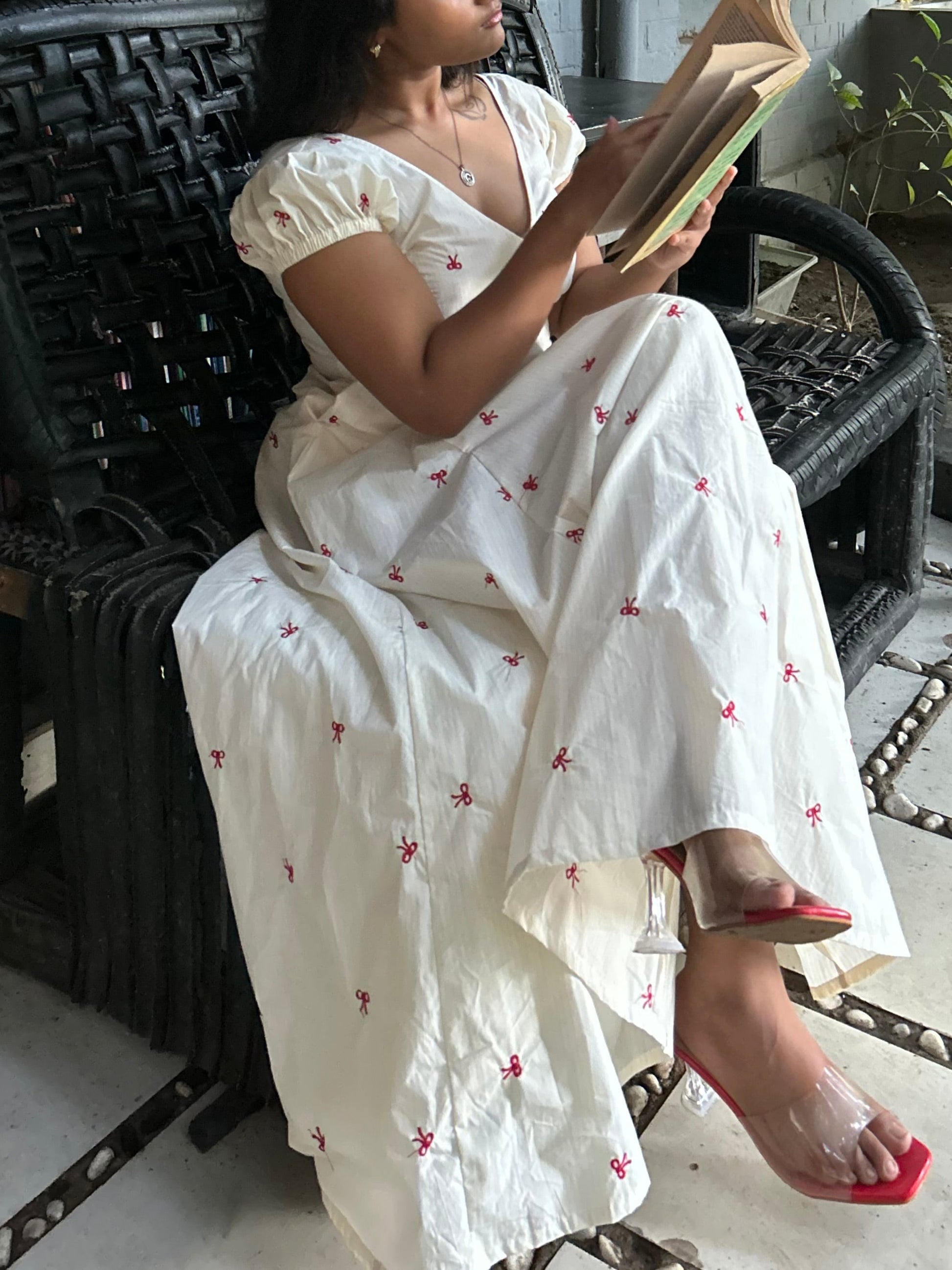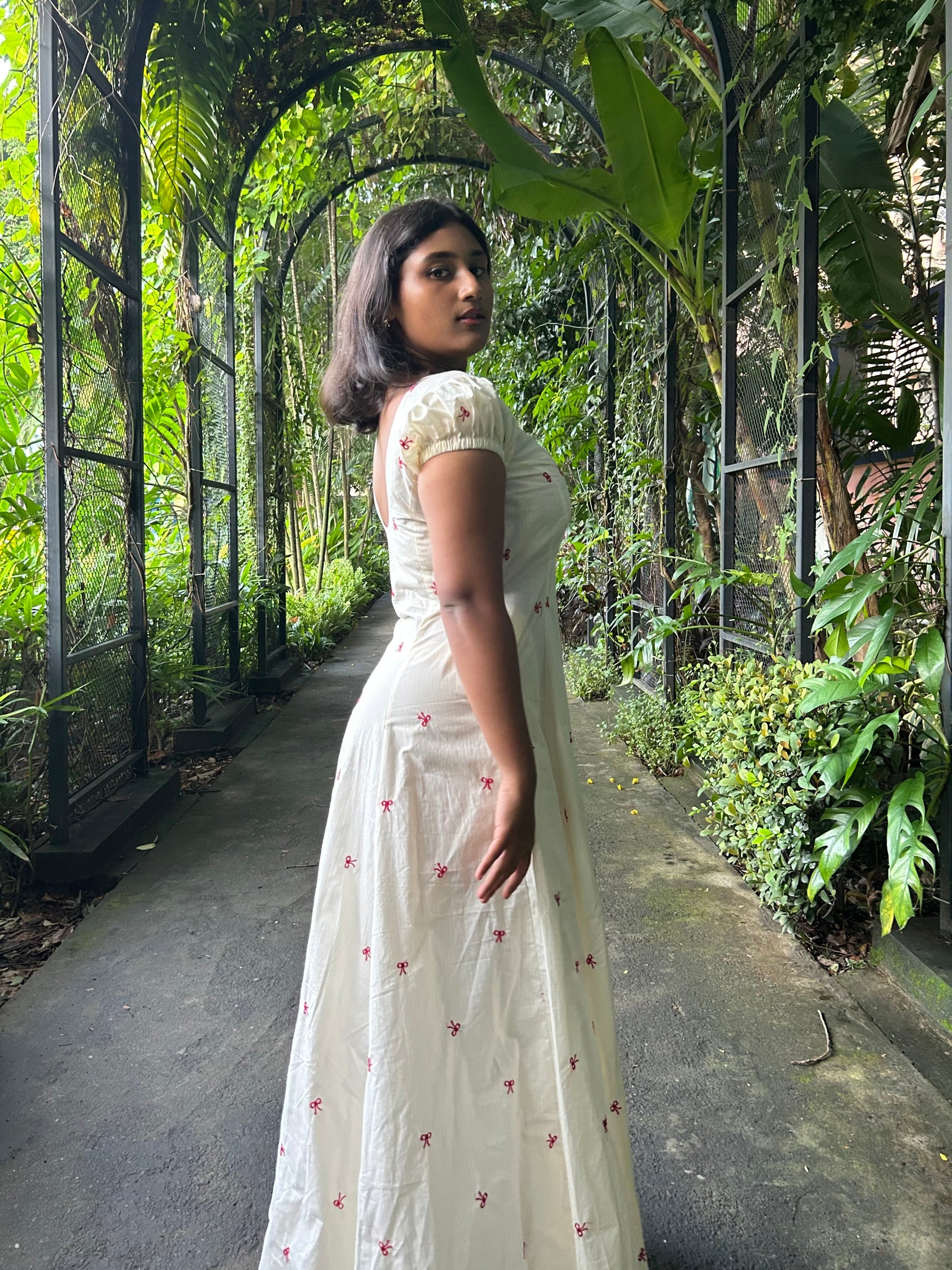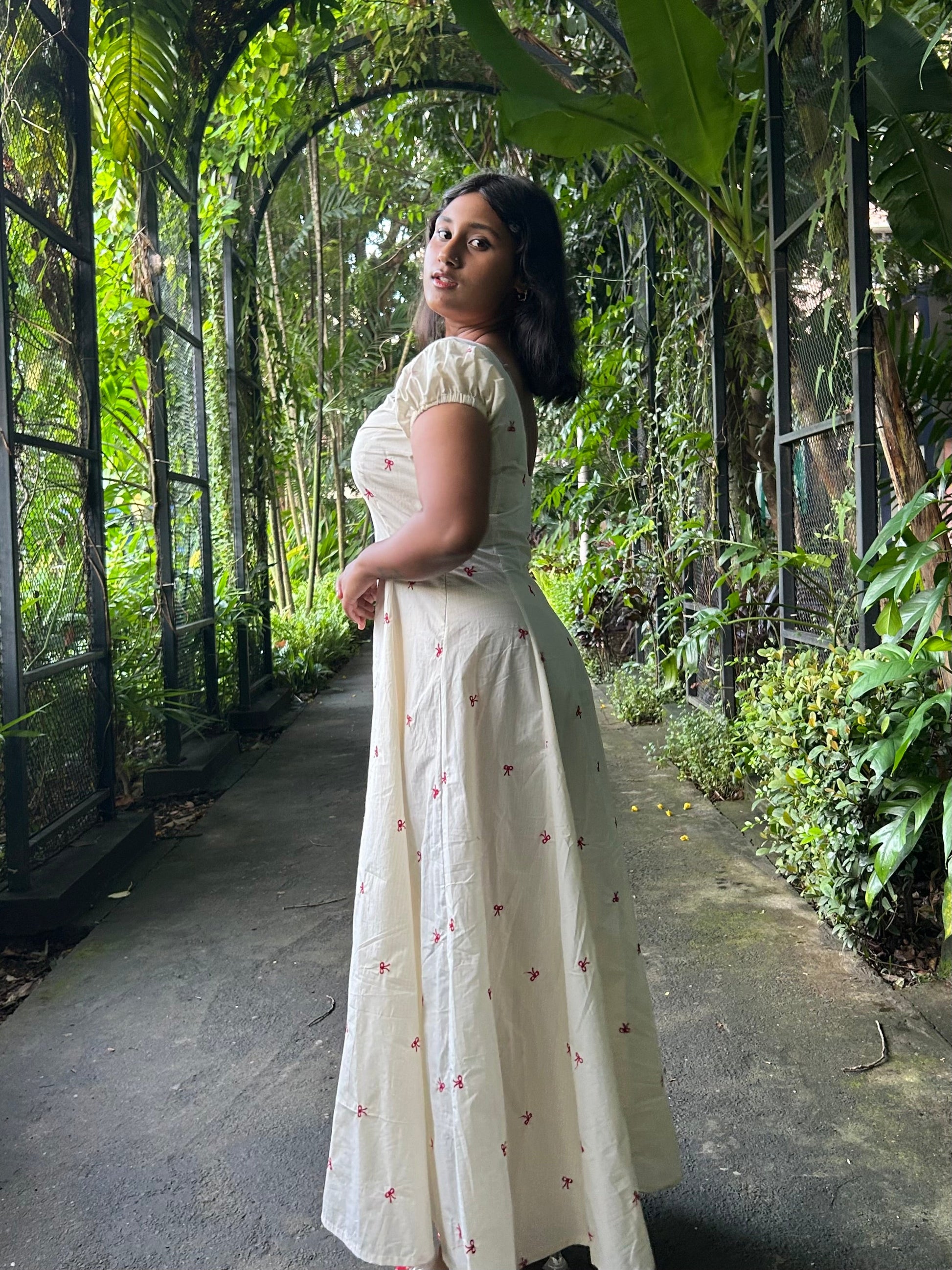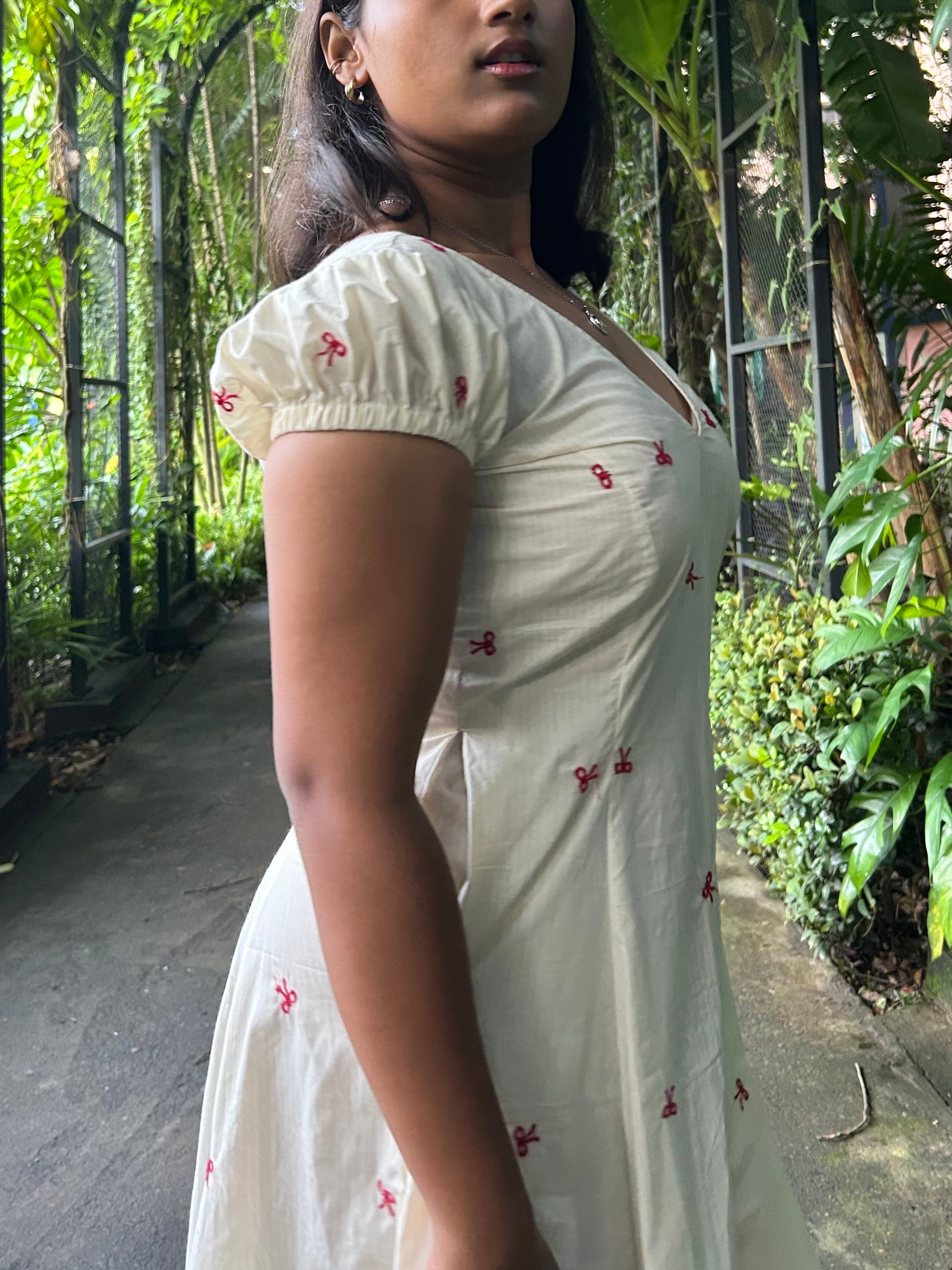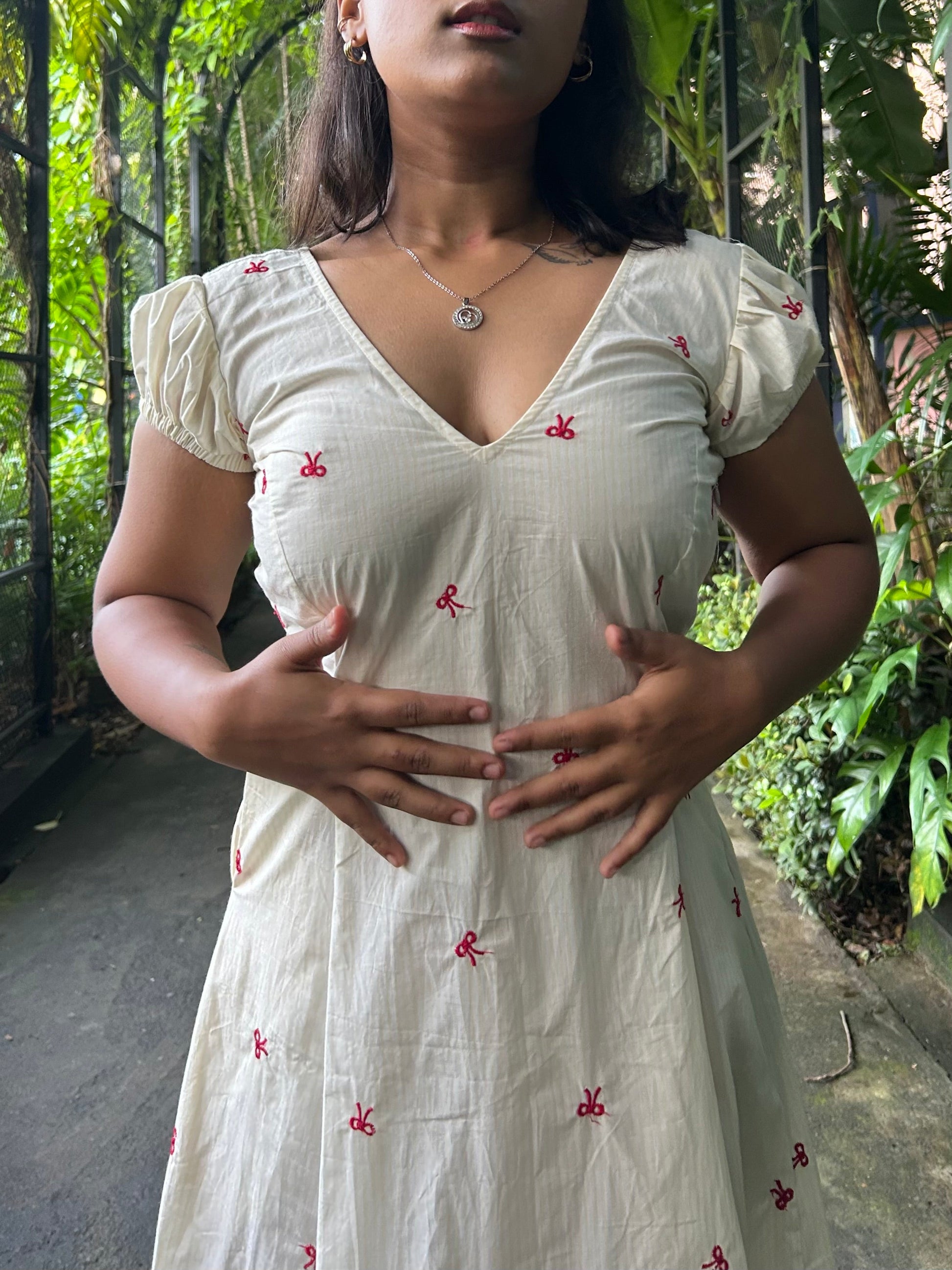 Fabric: Breathable cotton with tiny embroidered details all over